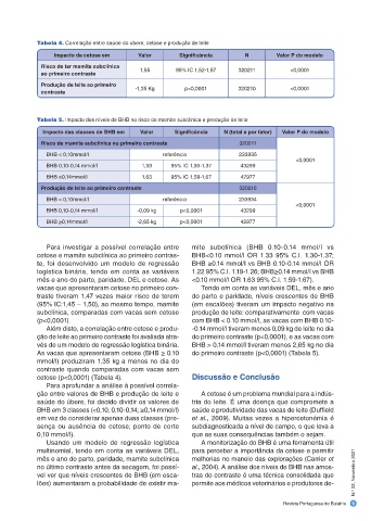 cetose e mamite subclínica ao primeiro contras- BHB<0.10 mmol/l OR 1.33 95% C.I. 1.30 -1.37;