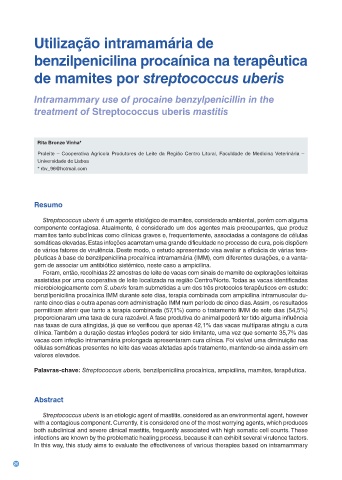 Palavras -chave: Streptococcus uberis, benzilpenicilina procaínica, ampicilina, mamites, terapêutica.