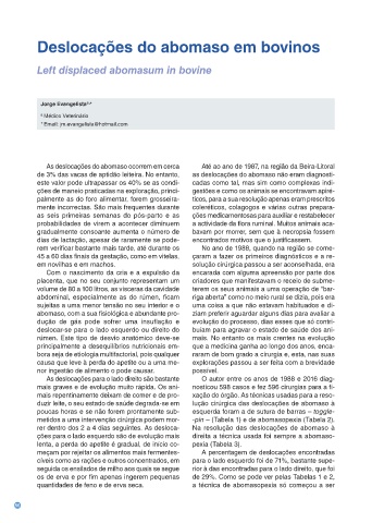 de 3% das vacas de aptidão leiteira. No entanto, as deslocações do abomaso não eram diagnosti-