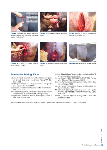 Figura 4. Sutura do musculo oblíquo Figura 5. Sutura ancorada contínua da Figura 6. Aspecto final da sutura da pele.