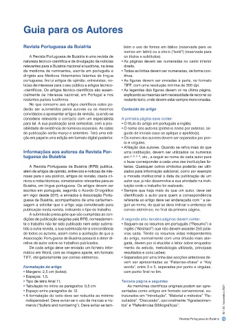 dições de publicação exigidas pela RPB, nomeadamen- A segunda e/ou terceira páginas devem conter: