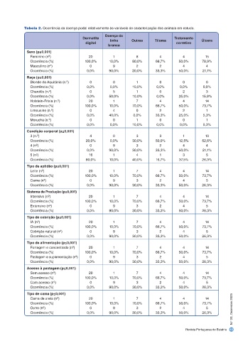 Tabela 2. Ocorrência da doença podal relativamente às variáveis de caracterização dos animais em estudo.