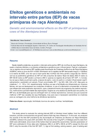 Neste trabalho pretendeu-se avaliar o intervalo entre partos (IEP) de novilhas de raça Alentejana, de