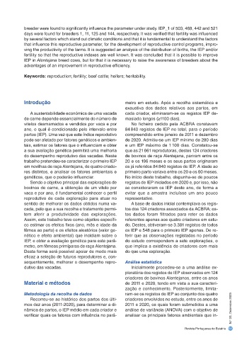 nâmica de partos, o IEP médio em cada criador e análise de variância (ANOVA) com o objetivo de N. o 22, Dezembro 2023